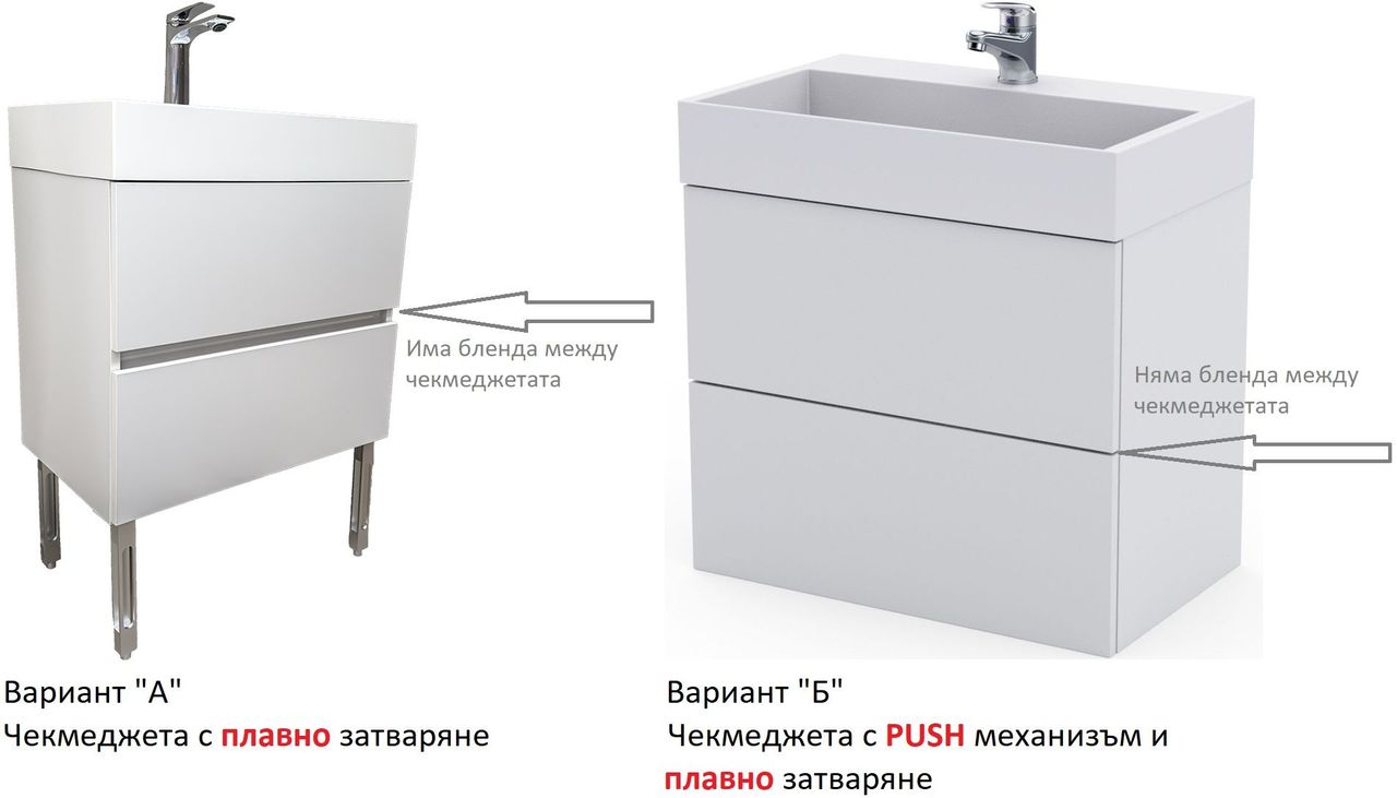 Съчетавайки стил, функционалност и издръжливост, нашите ПВЦ шкафове с две чекмеджета с пуш-механизъм са идеалното решение за подобряване на организацията и визията на вашата баня. Направете правилния избор за вашето пространство и се наслаждавайте на ежедневния комфорт и удоволствие.