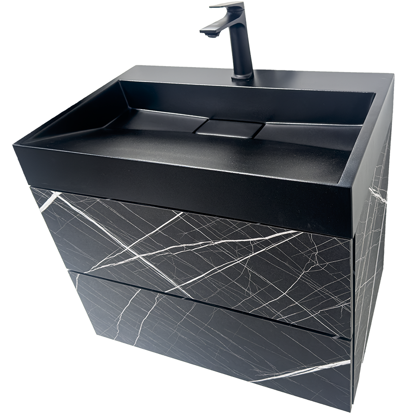 • Голяма мивка със скрит сифон и ПВЦ чекмедже с черен мат рамка VIENA 80