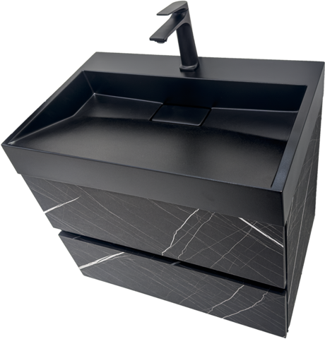 Голяма мивка със скрит сифон и ПВЦ чекмедже с черен мат рамка VIENA 80