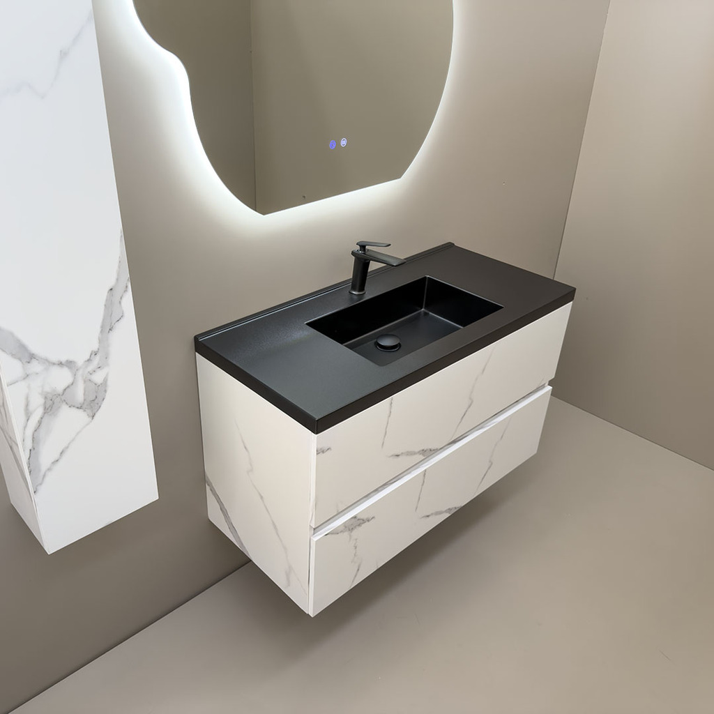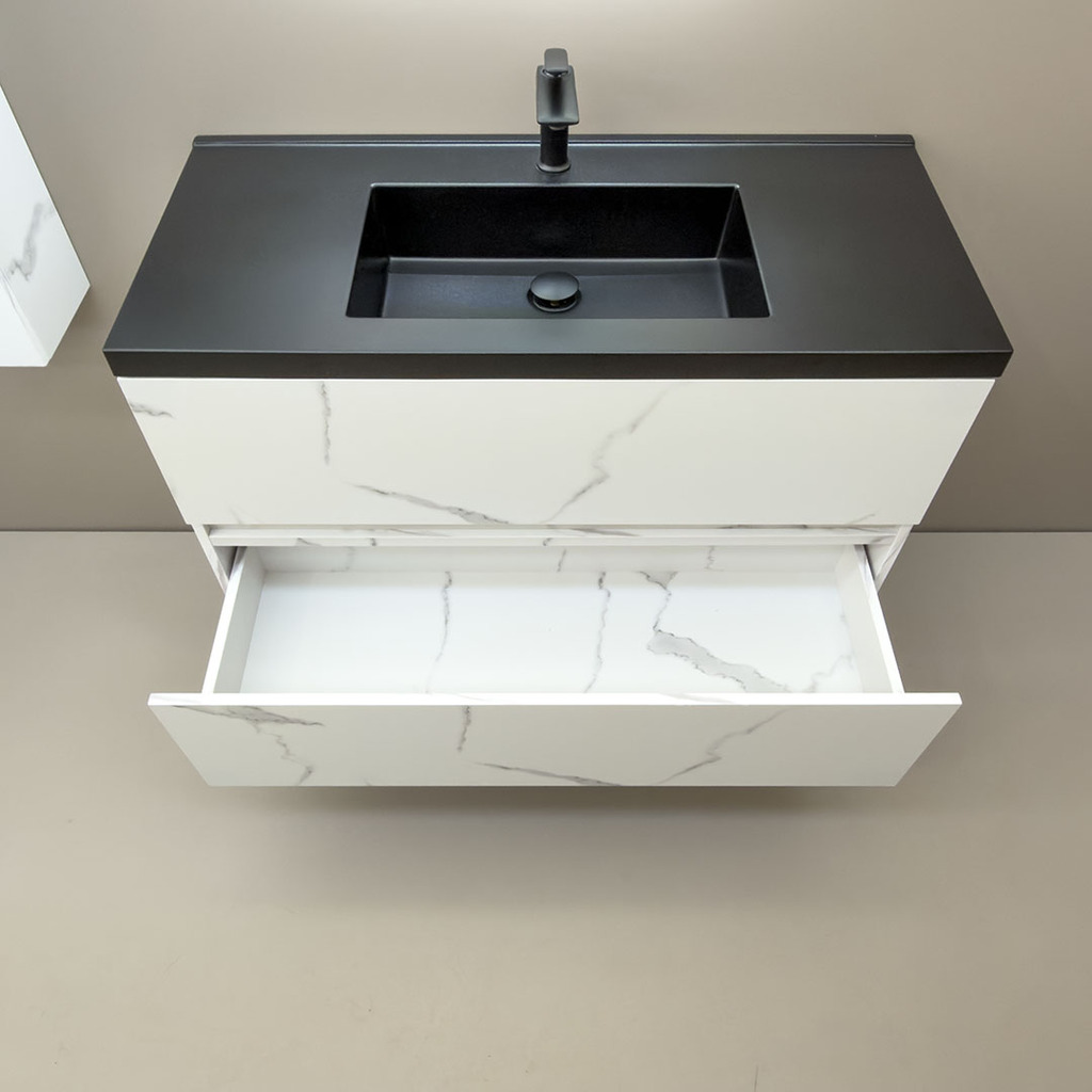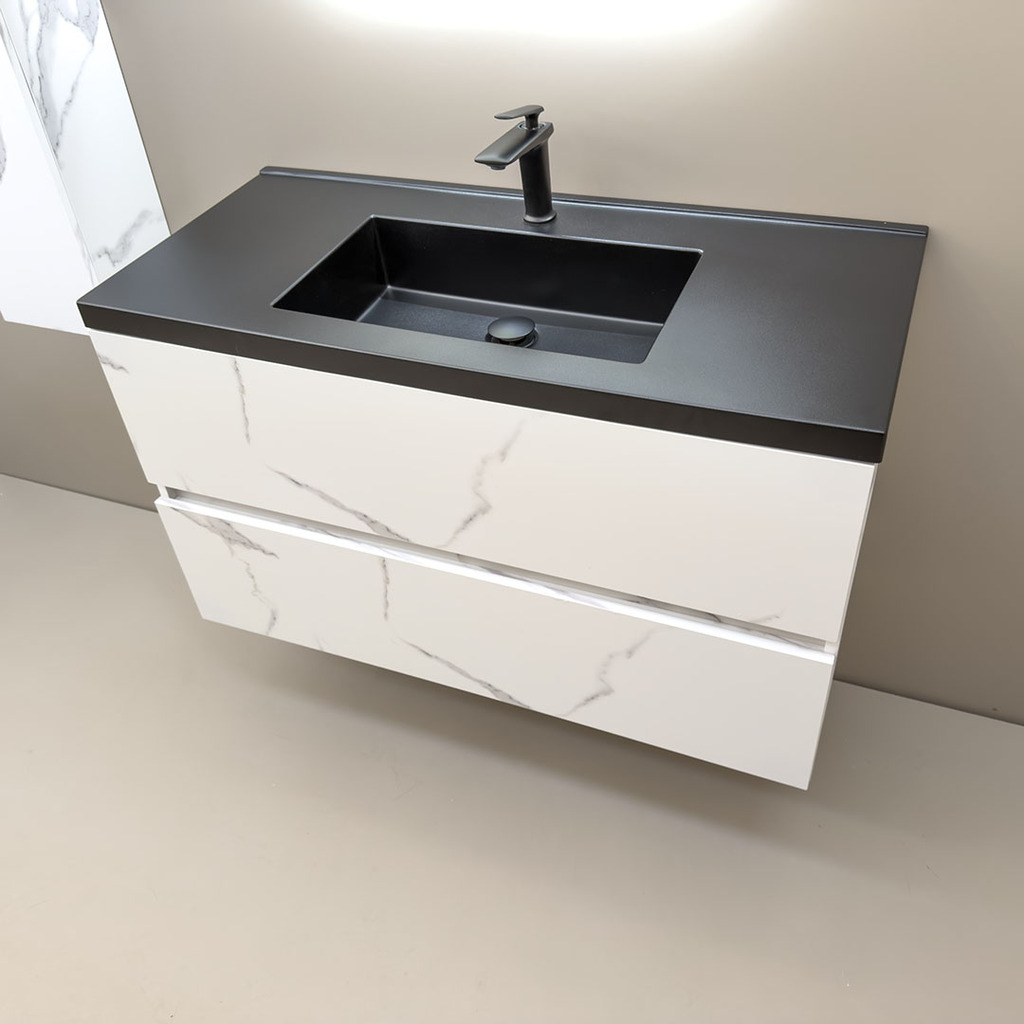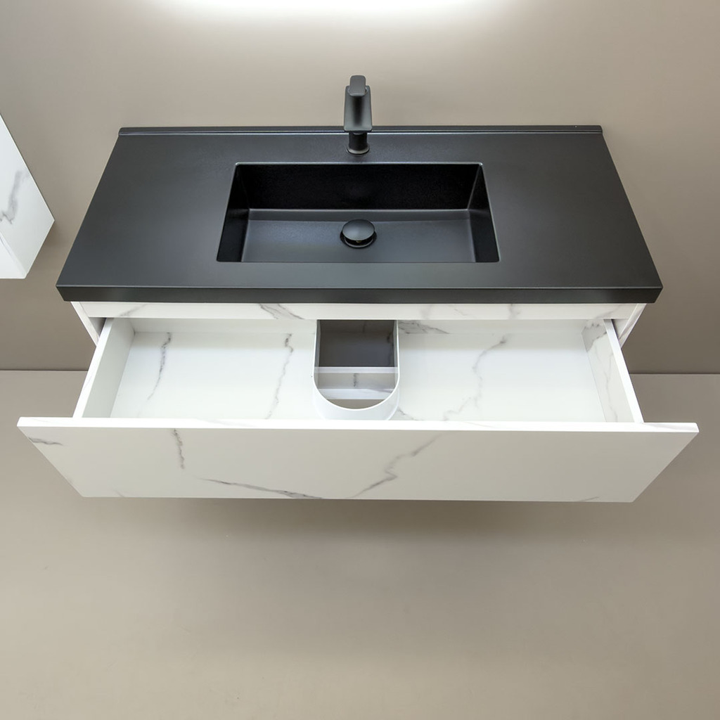 3. Дълъг шкаф за баня водоустойчив Siena 100 Marble Black
