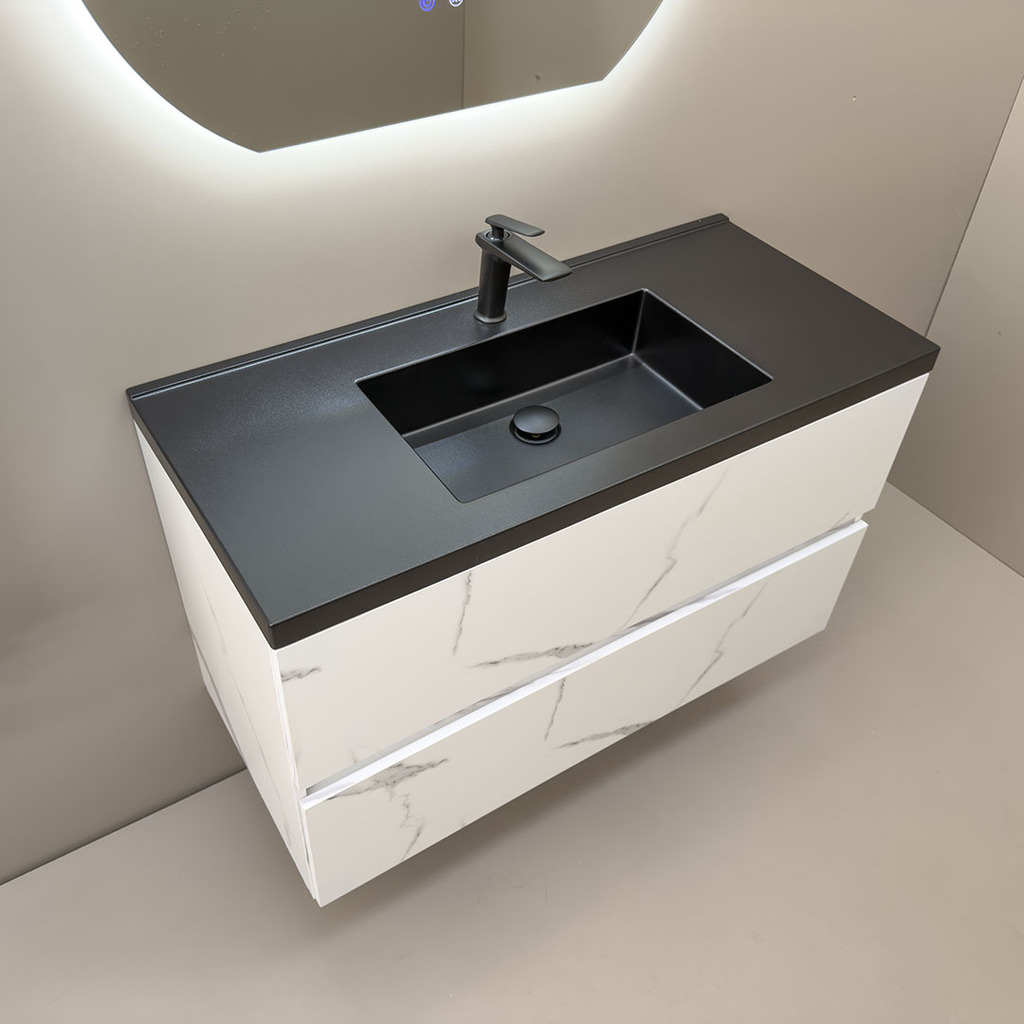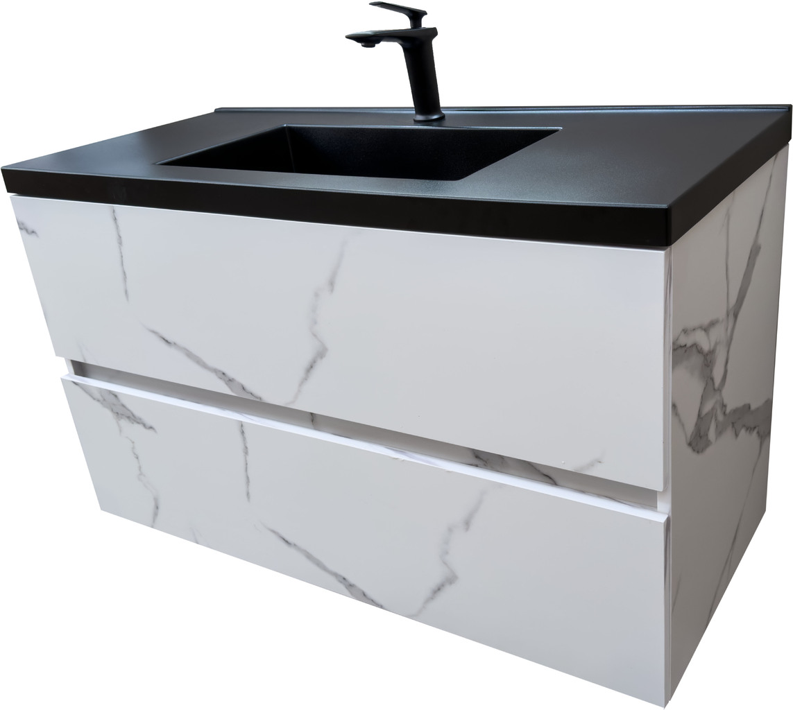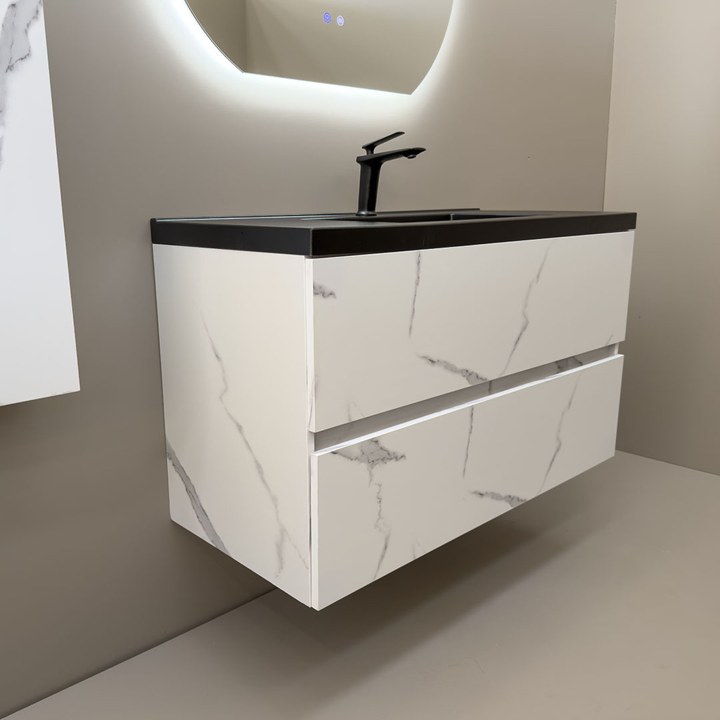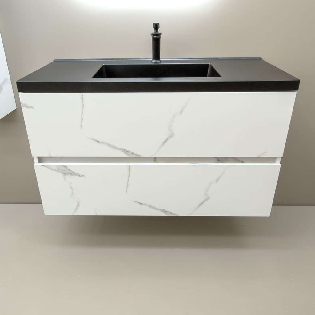 3. Дълъг шкаф за баня водоустойчив Siena 100 Marble Black