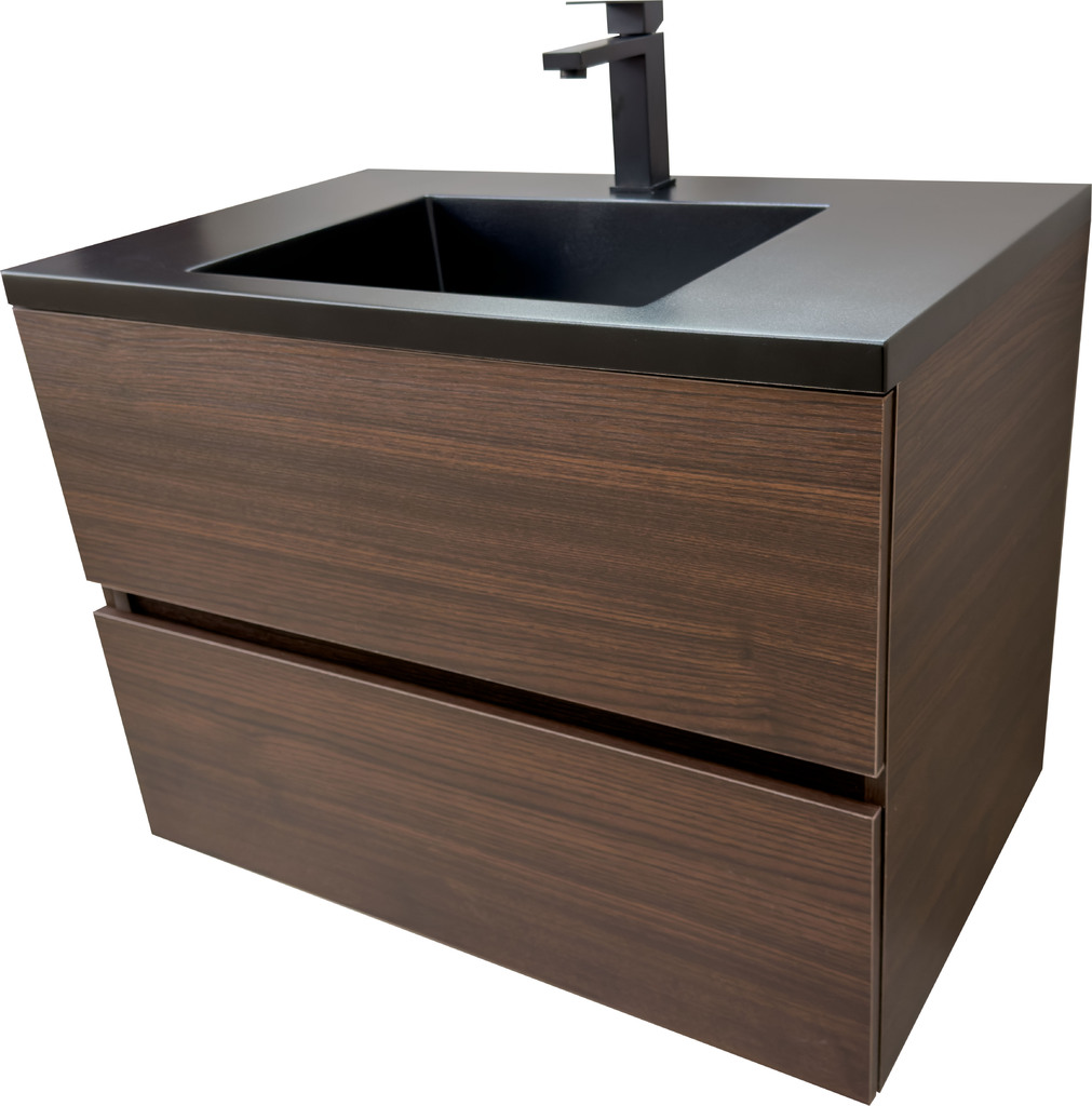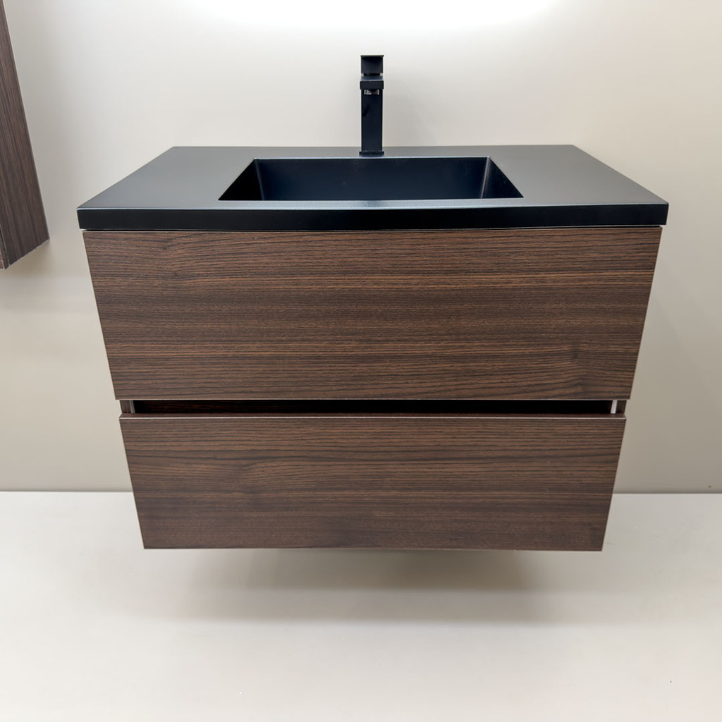 • Дървесен шкаф за баня черен мат мивка Torino 80 Venge Black