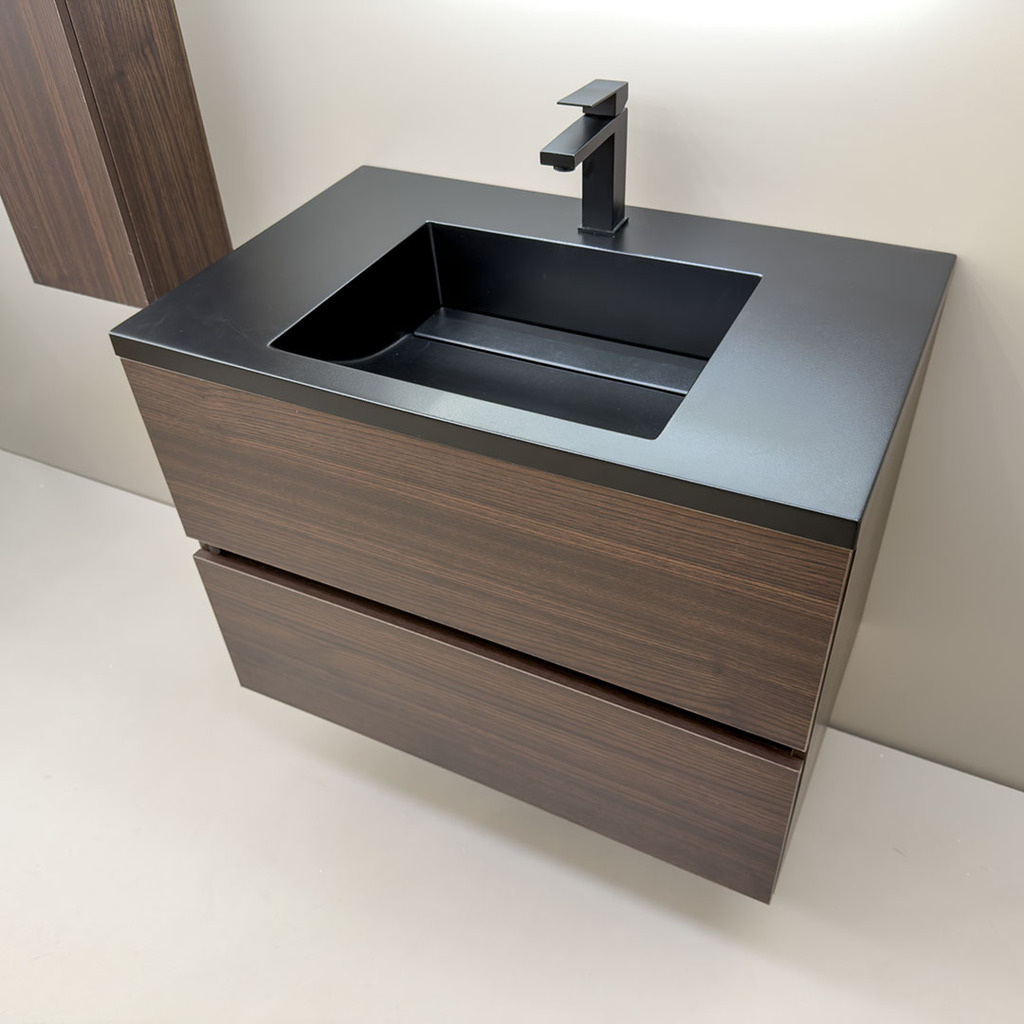 3. Дървесен шкаф за баня черен мат мивка Torino 80 Venge Black