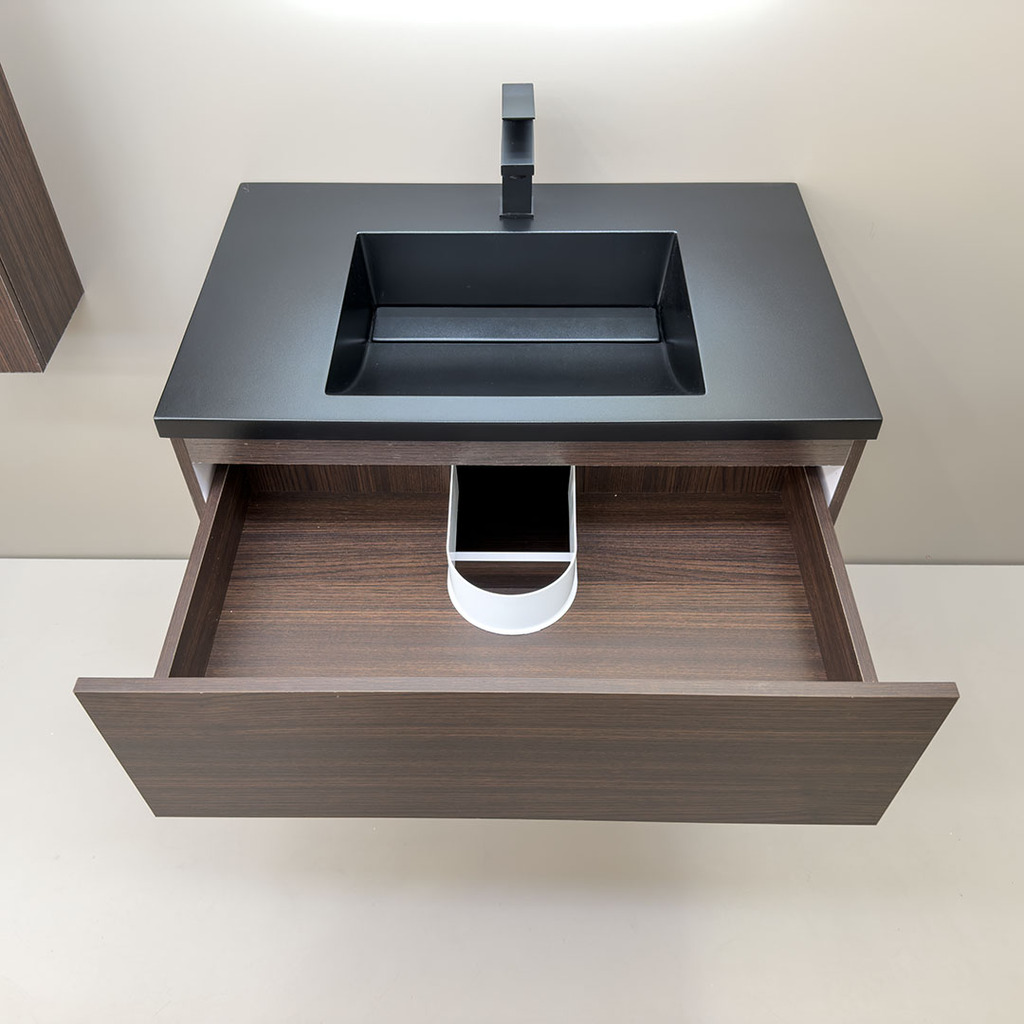• Голяма мивка със скрит сифон и ПВЦ чекмедже с черен мат рамка VIENA 80