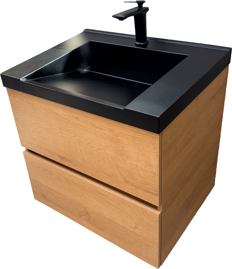 • Дървесен шкаф за баня от ПВЦ с черен мат мивка Cremona Corbridge B