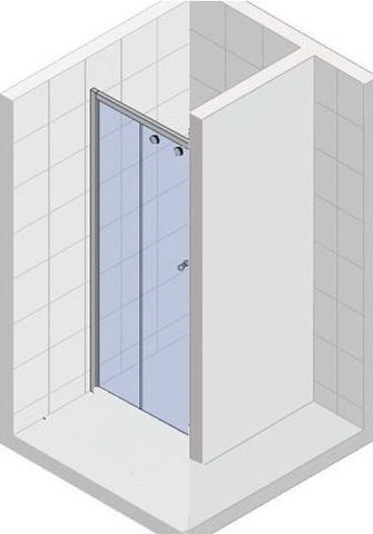 Параван за баня с една статична част и плъзгаща врата. Изработва се по индивидуални размери. Може да се избира дали стъклото да бъде прозрачно или матирано.