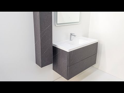 • Голям шкаф за баня сив мат с бяла мивка Siena 100 Concrete W