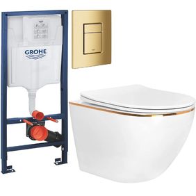 Златен бутон и казанче Grohe + тоалетна със златен ръб Carlo