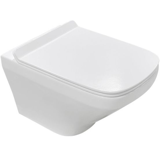 Това е пълен комплект готов за монтаж и експлоатация. Вграденото казанче се състои от воден резервоар; пълнещ и изпразващ механизъм; модул с рамка; крепежни елементи; активиращ бутон с функция 3/6 литра с хромово покритие и овален дизайн. Висящата тоалетна е с  обливане тип Rimfree и бял гланц. Трябва да се обърне особено внимание на фактът, че чинията е със скрит монтаж, което е рядкост и обикновено на доста висока цена при всеки производител.  Капакът е ултратънък , с плавно затваряне и е изработен конкретно за тази тоалетна чиния с цел пълна съвместимост и цялостна завършеност на дизайна.