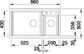Композитна кухненска мивка за вграждане в плот. Необходимият светъл отвор на шкафа е 900 мм. Външният размер на мивката е 850х490мм. Голямото корито е с размери 525х430 мм. и дълбочина 190 мм. По-малкото корито е 356х260мм. Мивката се предлага в богата цветова гама.