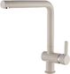 Смесител за кухненска мивка. Чучурът е въртелив, а модела е с висок габарит, което го прави функционален при употреба.  Ръкохватката е  фина и елегантна. В основата на батерията има дизайнерска плоча допринясяща за завършеност на дизайна. Смесителят е изработен изцяло от месинг, като покритието е бежов мат, което го прави изключително подходящ за гранитни мивки в бежовата гама . Смесителната глава е от висок клас керамика. В комплекта са включени крепежните елементи и гъвкавите връзки.