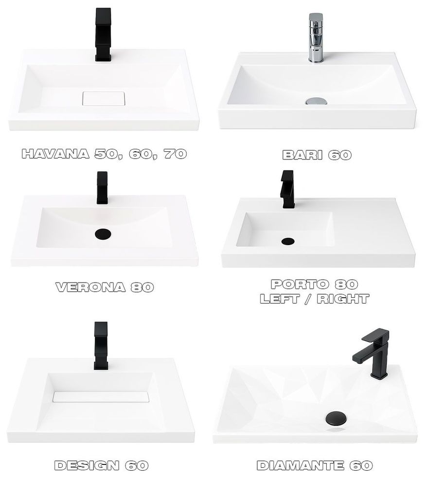 Уважаеми клиенти представяме Ви гамата ни от дизайнерски мебели за баня. Бихте могли да изберете мебел с вградена мивка или мебел с плот върху който да се постави мивка. Бихте могли да изберете дали да бъде с едно или две чекмеджета или пък с вратички. Ако моделът е с вградена мивка разполагате с избор на различни варианти умивалници. При моделите с плот мивките за монтаж върху плот са с огромно разообразие и избор сред стотици варианти.