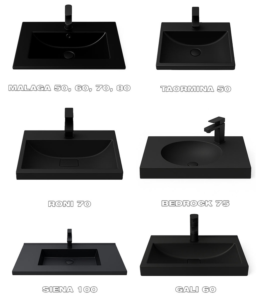 • Голяма мивка със скрит сифон и ПВЦ чекмедже с черен мат рамка VIENA 80
