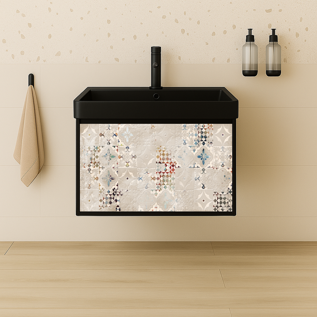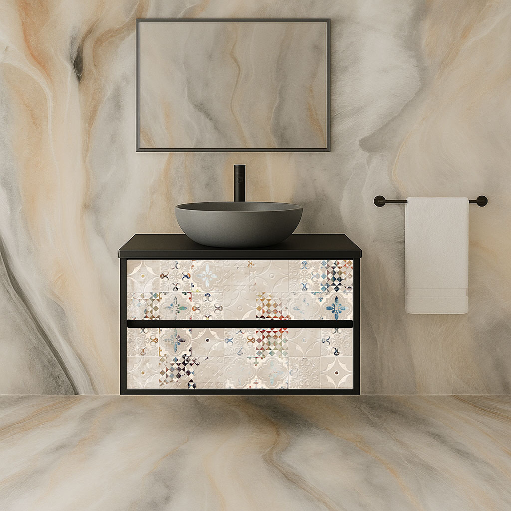 Издръжливост и лесна поддръжка: ПВЦ материалът е издръжлив и устойчив на влага, което го прави идеален за използване в бани. Лесната поддръжка го прави подходящ за ежедневна употреба.
