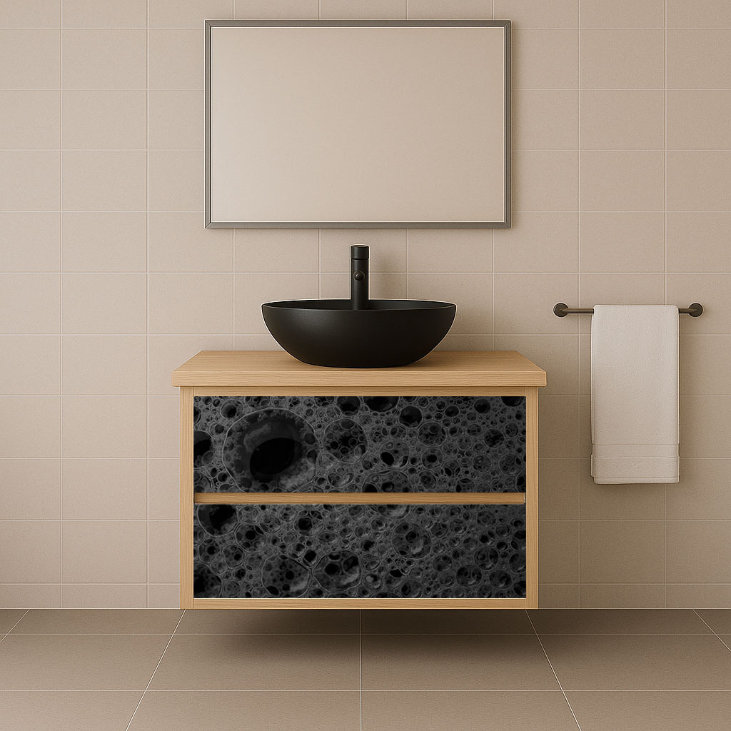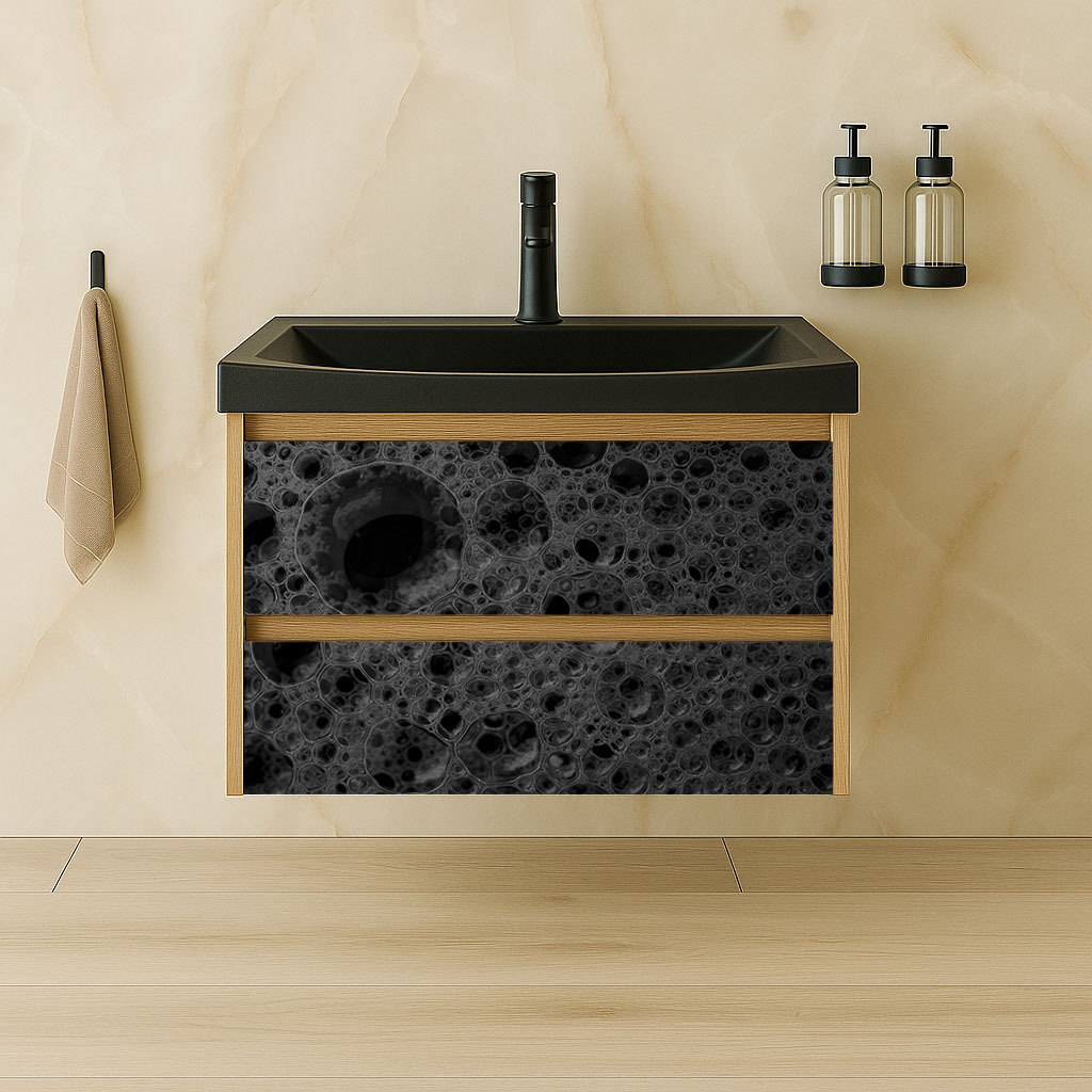 • Голяма мивка със скрит сифон и ПВЦ чекмедже с черен мат рамка VIENA 80