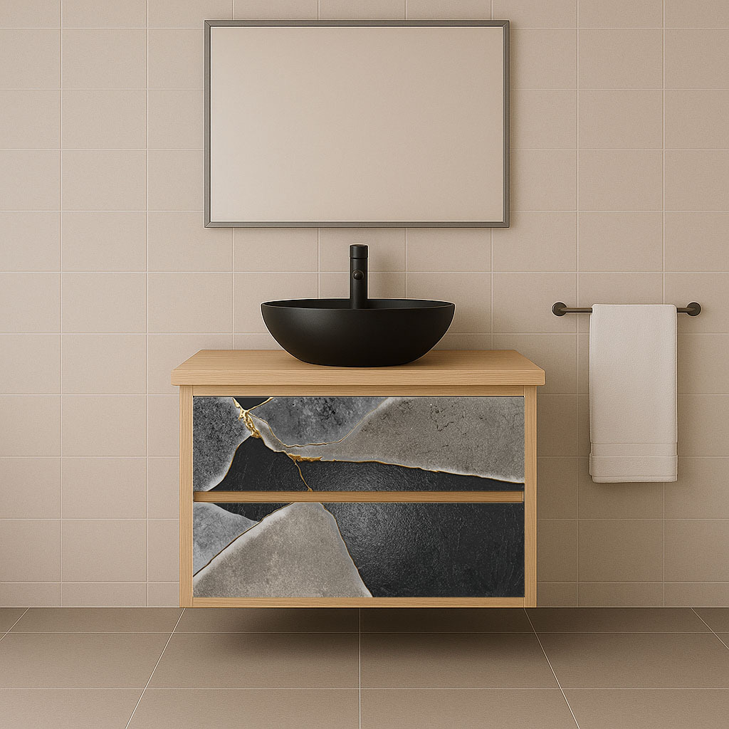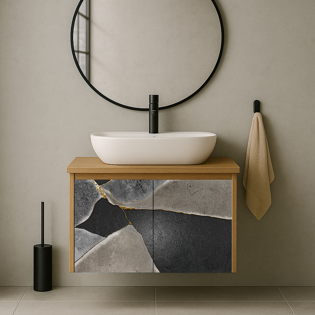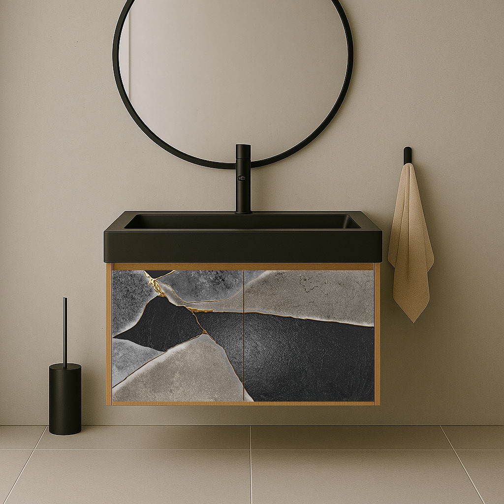 • Мивка за баня и мебел с черни рамки и чекмедже VIENA 70
