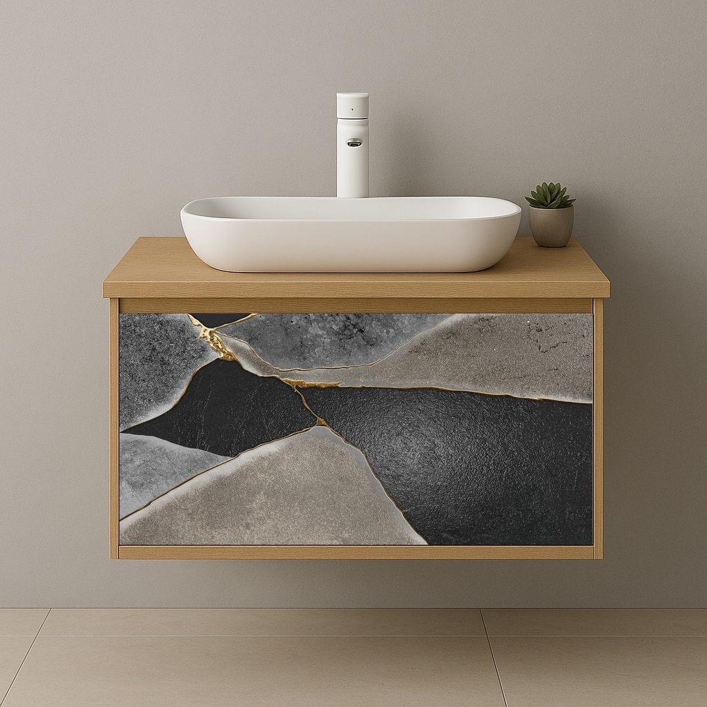 Мивка за баня и мебел с черни рамки и чекмедже VIENA 70