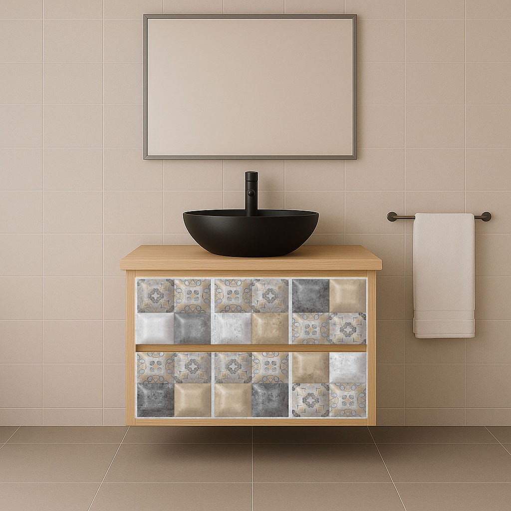 Издръжливост и лесна поддръжка: ПВЦ материалът е издръжлив и устойчив на влага, което го прави идеален за използване в бани. Лесната поддръжка го прави подходящ за ежедневна употреба.