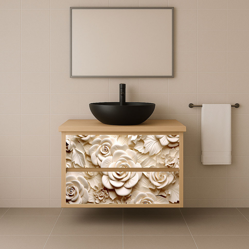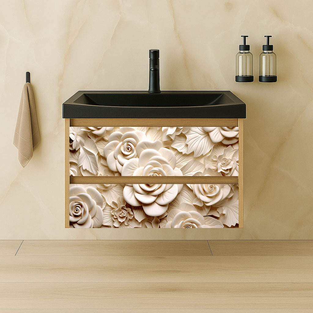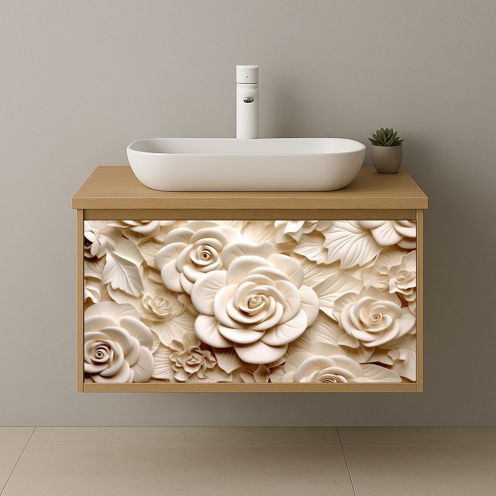 Издръжливост и лесна поддръжка: ПВЦ материалът е издръжлив и устойчив на влага, което го прави идеален за използване в бани. Лесната поддръжка го прави подходящ за ежедневна употреба.