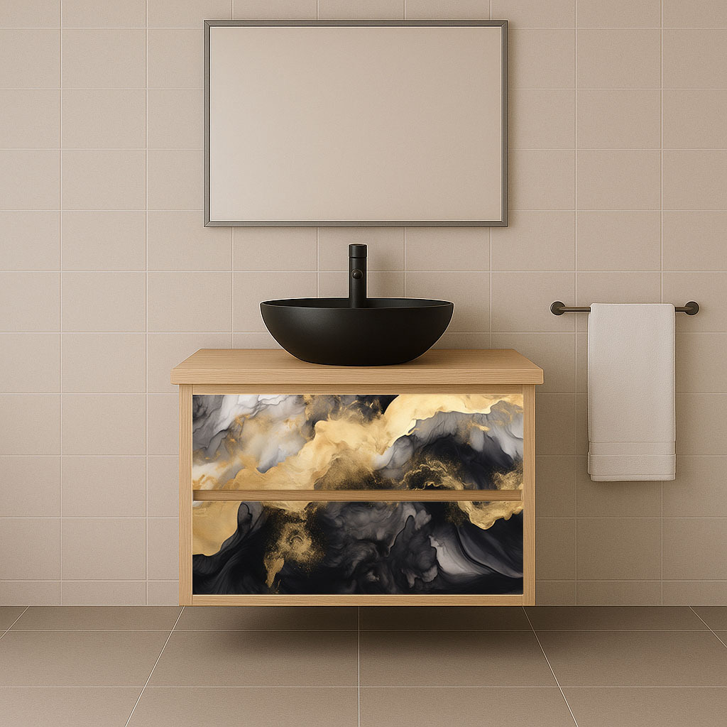 • Мивка за баня и мебел с черни рамки и чекмедже VIENA 70