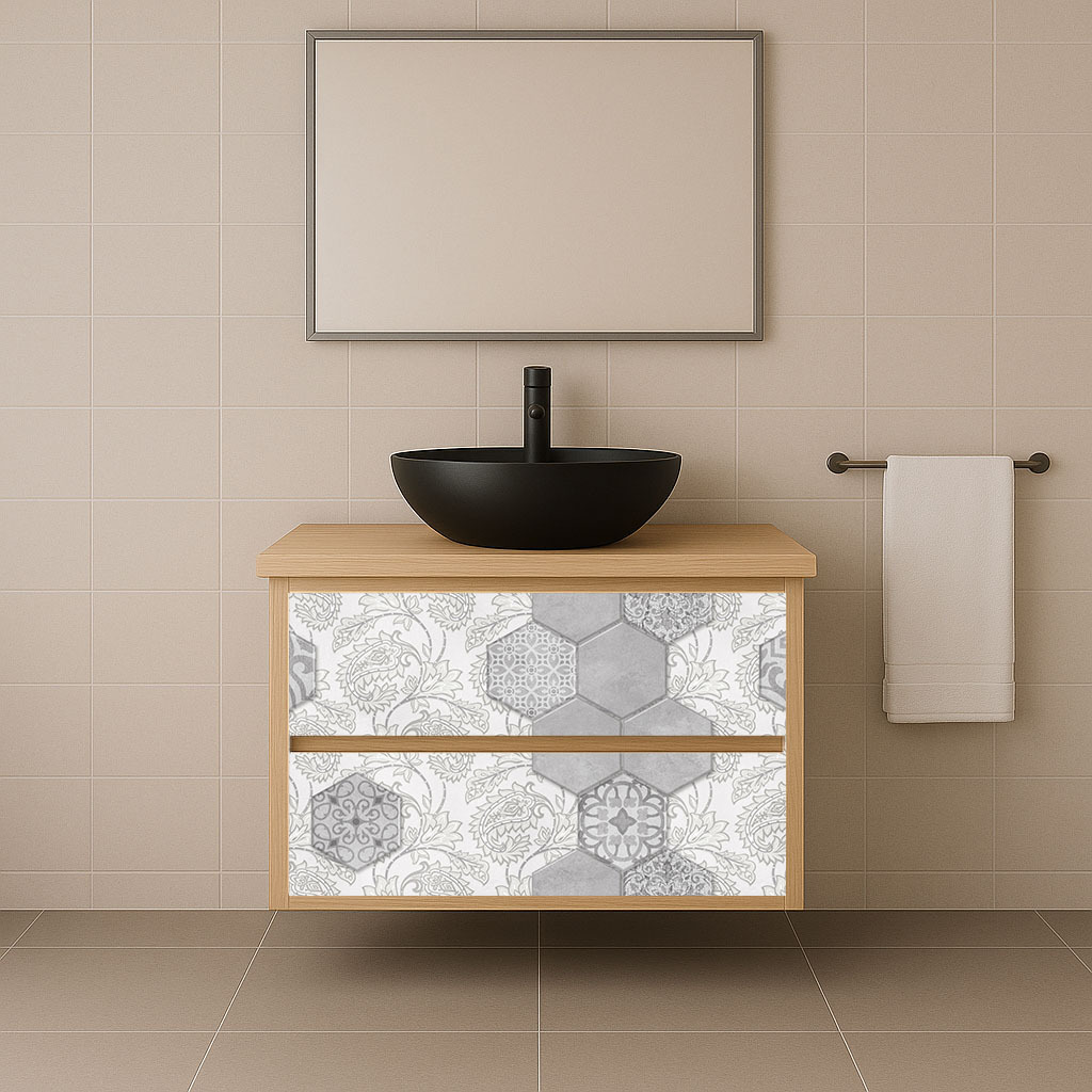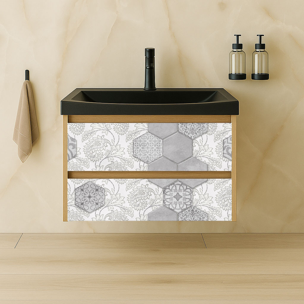 Издръжливост и лесна поддръжка: ПВЦ материалът е издръжлив и устойчив на влага, което го прави идеален за използване в бани. Лесната поддръжка го прави подходящ за ежедневна употреба.