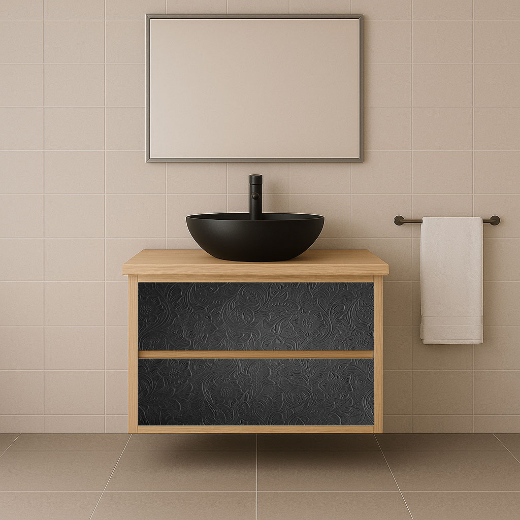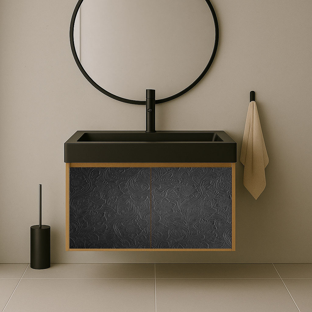 • Голяма мивка със скрит сифон и ПВЦ чекмедже с черен мат рамка VIENA 80