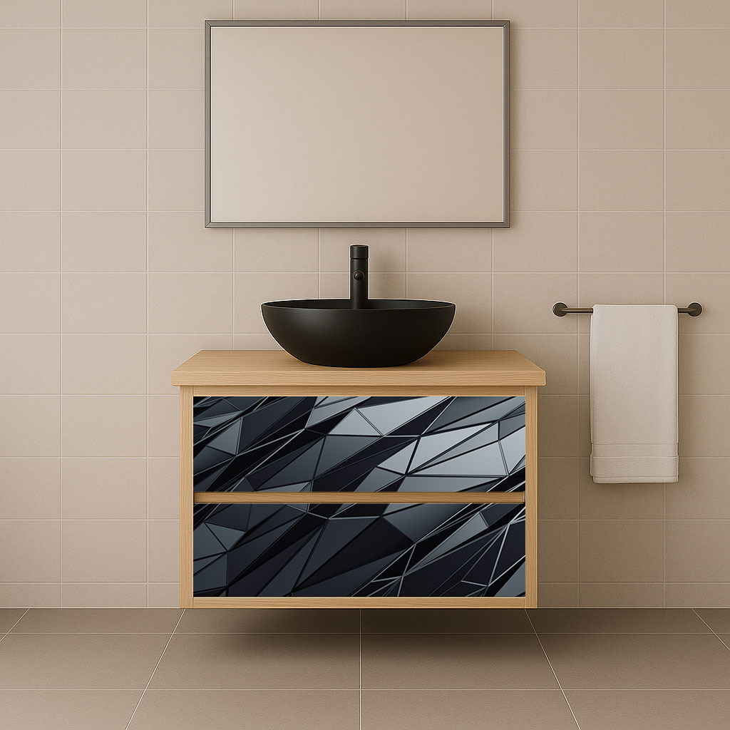 Голяма мивка със скрит сифон и ПВЦ чекмедже с черен мат рамка VIENA 80