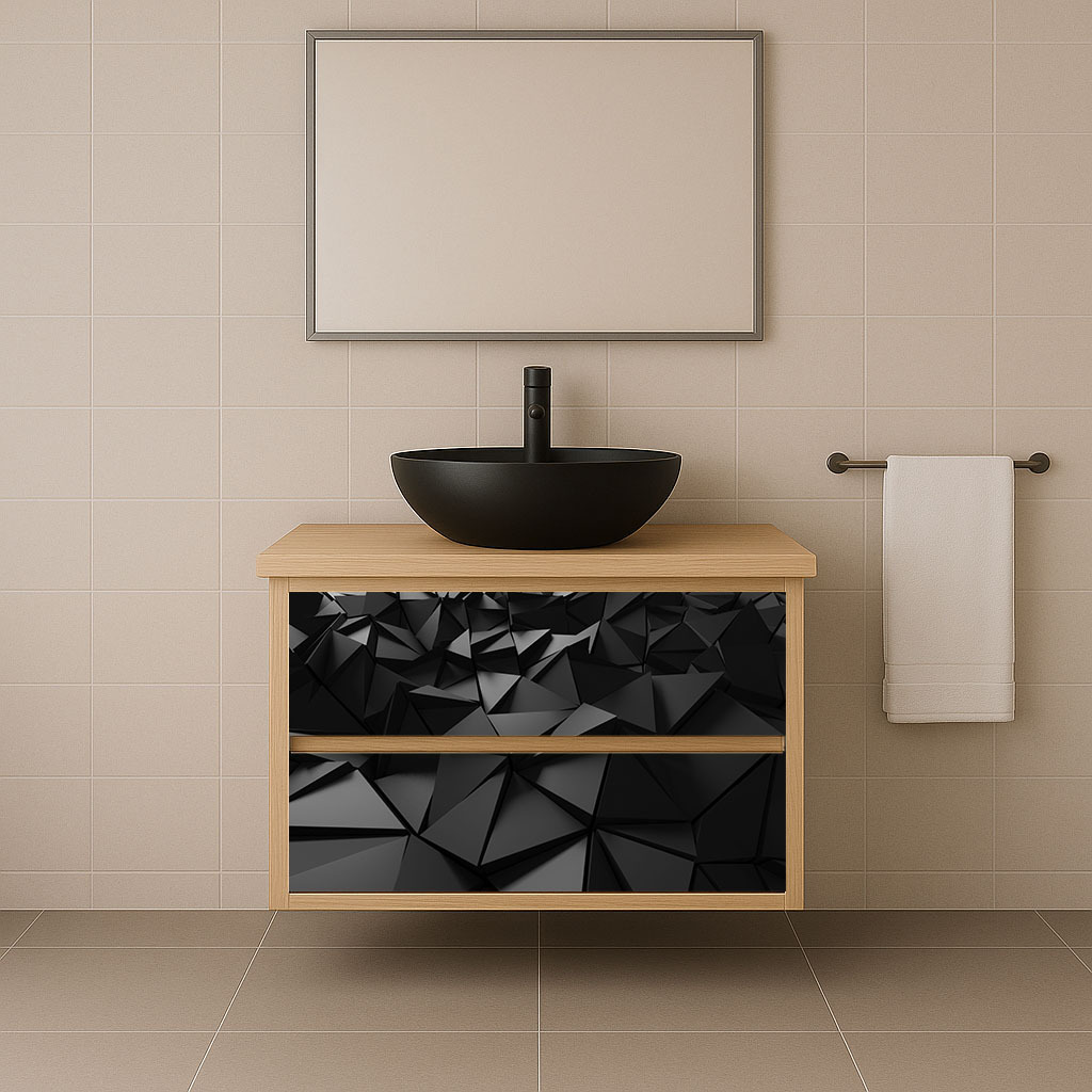 • Голяма мивка със скрит сифон и ПВЦ чекмедже с черен мат рамка VIENA 80