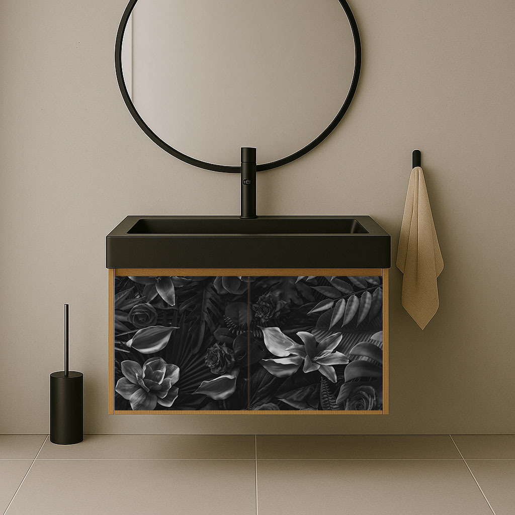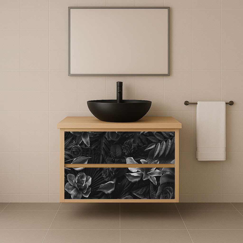 Мивка за баня и мебел с черни рамки и чекмедже VIENA 70