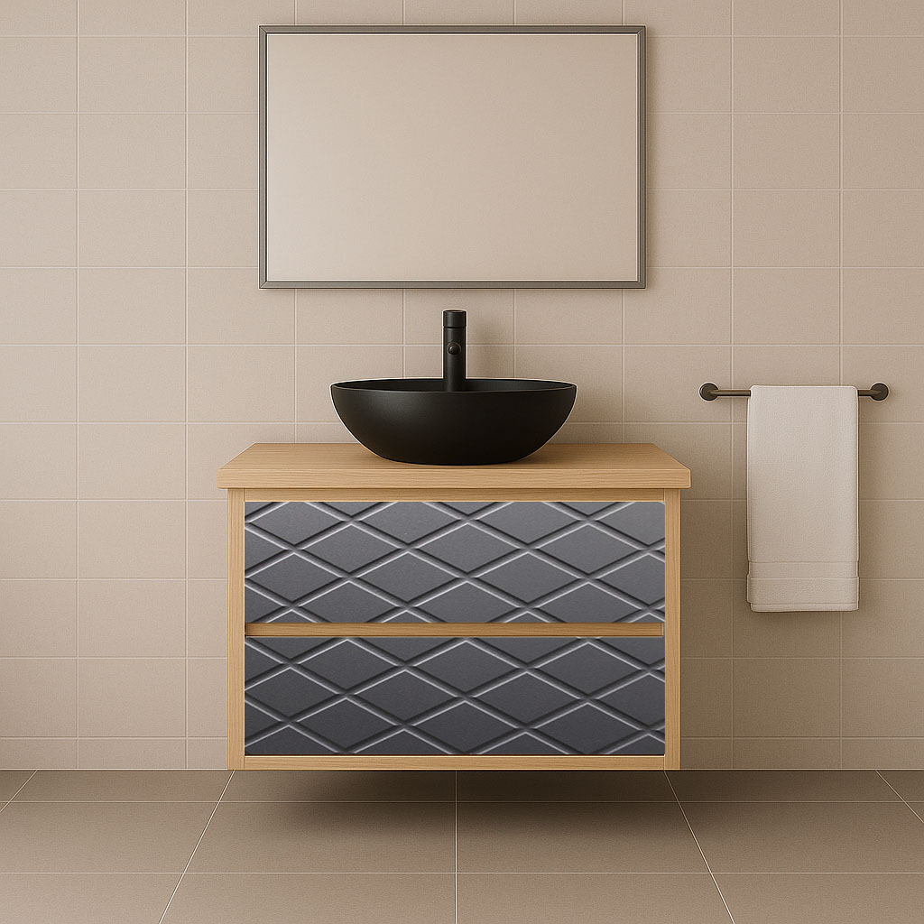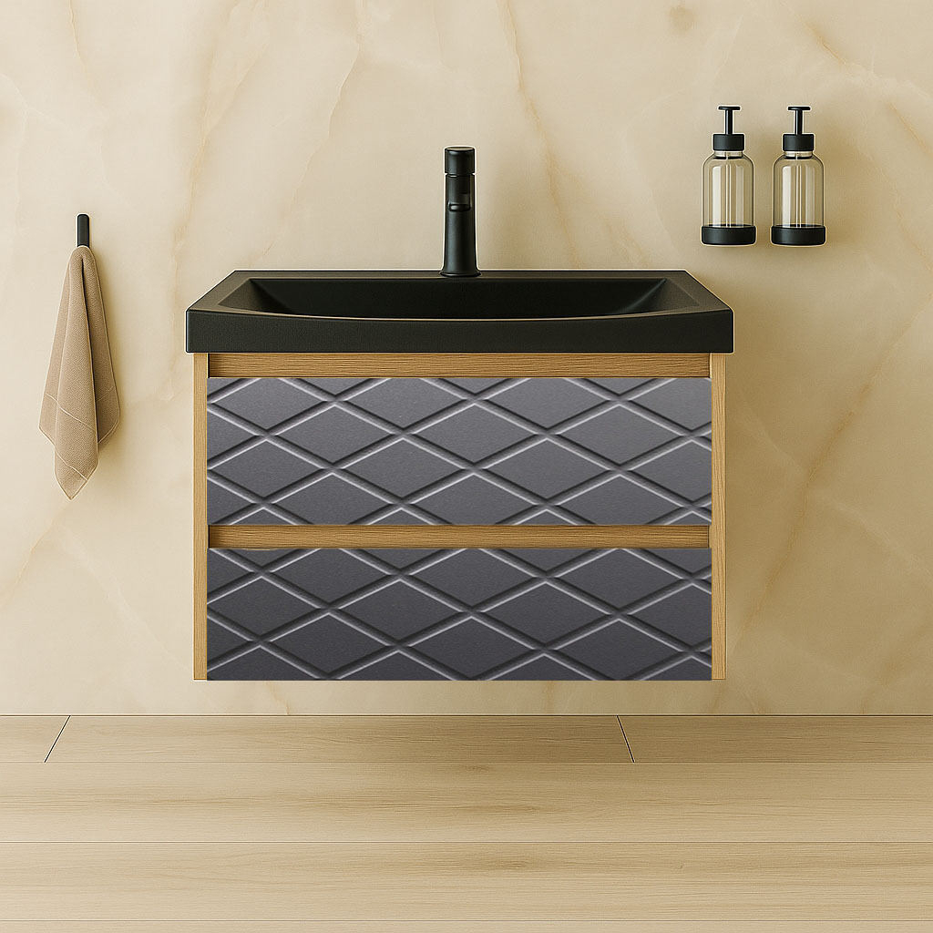 Голяма мивка със скрит сифон и ПВЦ чекмедже с черен мат рамка VIENA 80