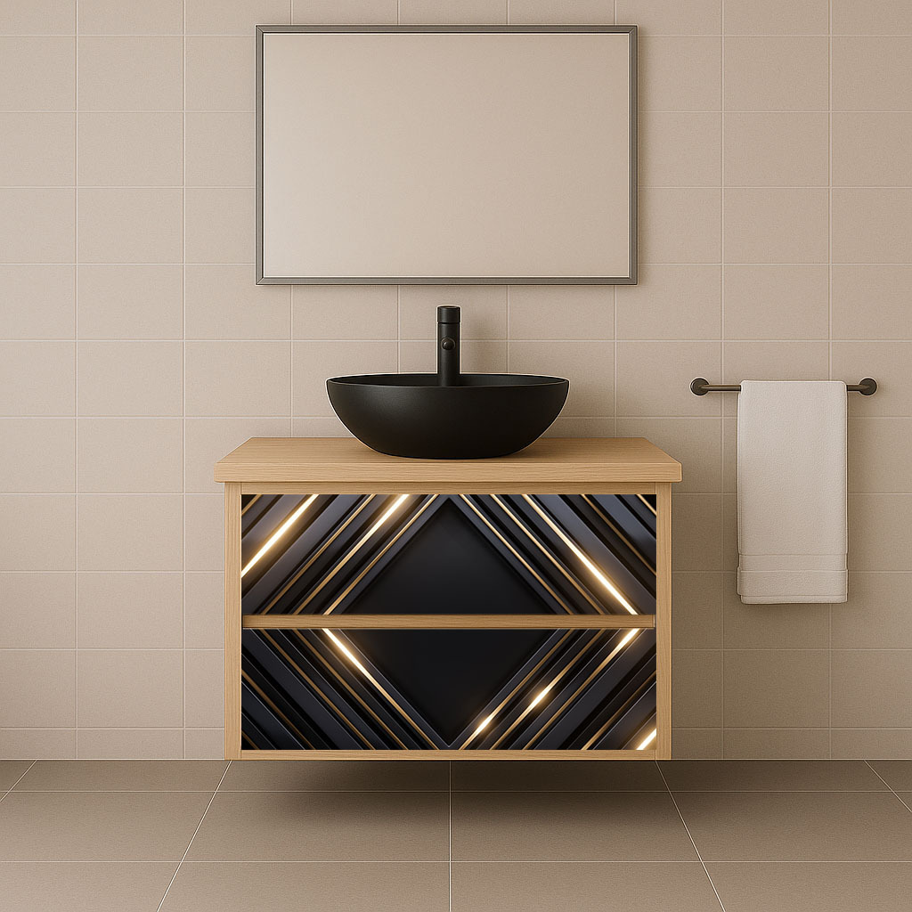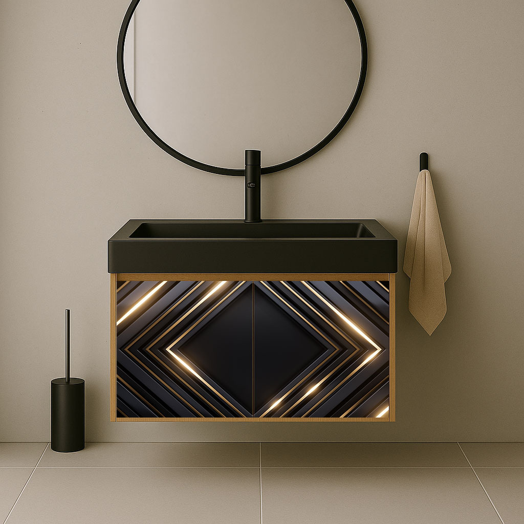 • Мивка за баня и мебел с черни рамки и чекмедже VIENA 70