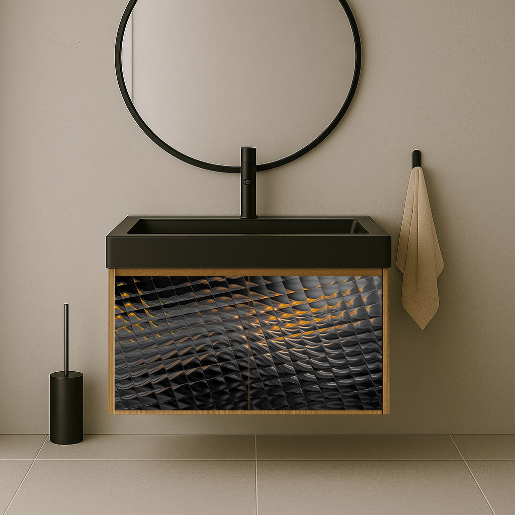 • Мивка за баня и мебел с черни рамки и чекмедже VIENA 70