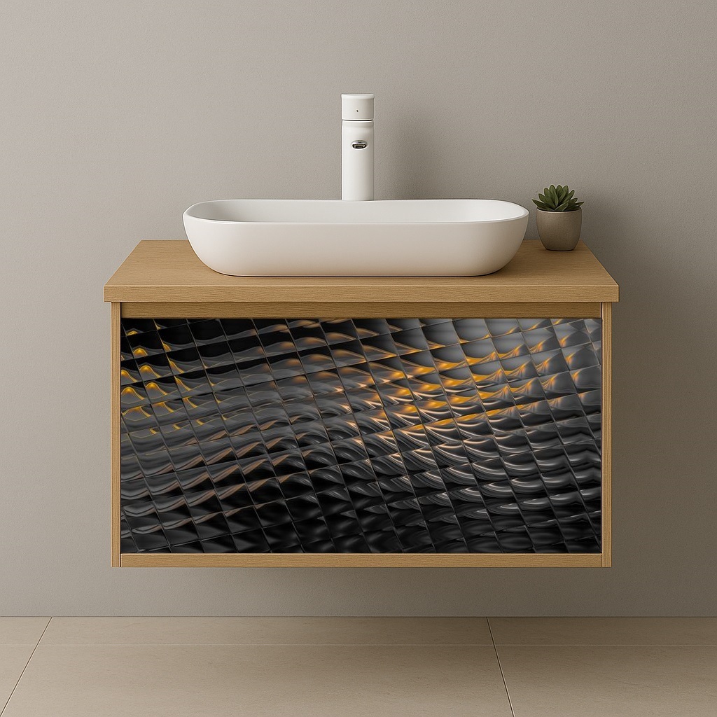 Мивка за баня и мебел с черни рамки и чекмедже VIENA 70