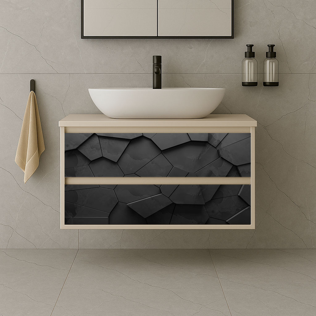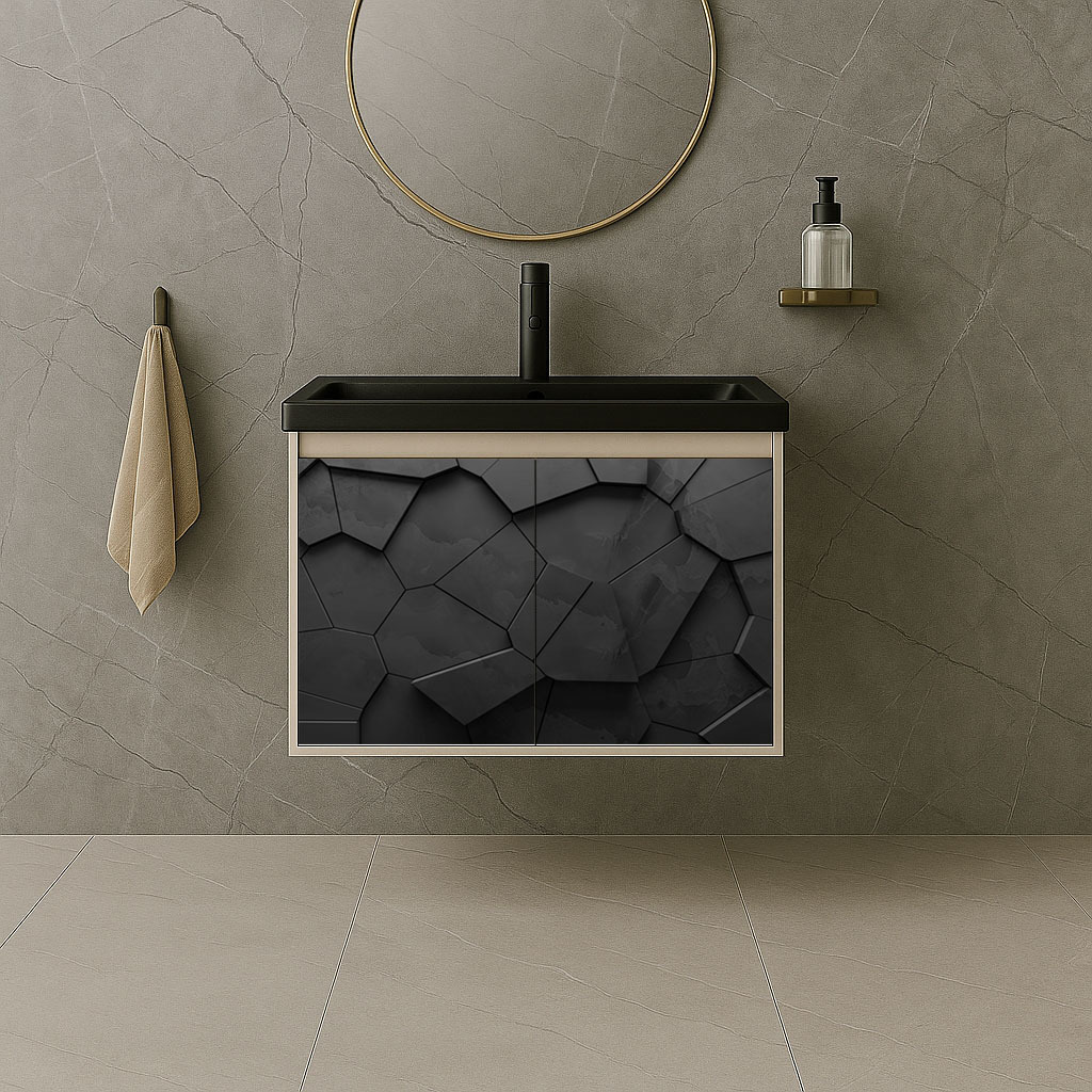 Голяма мивка със скрит сифон и ПВЦ чекмедже с черен мат рамка VIENA 80
