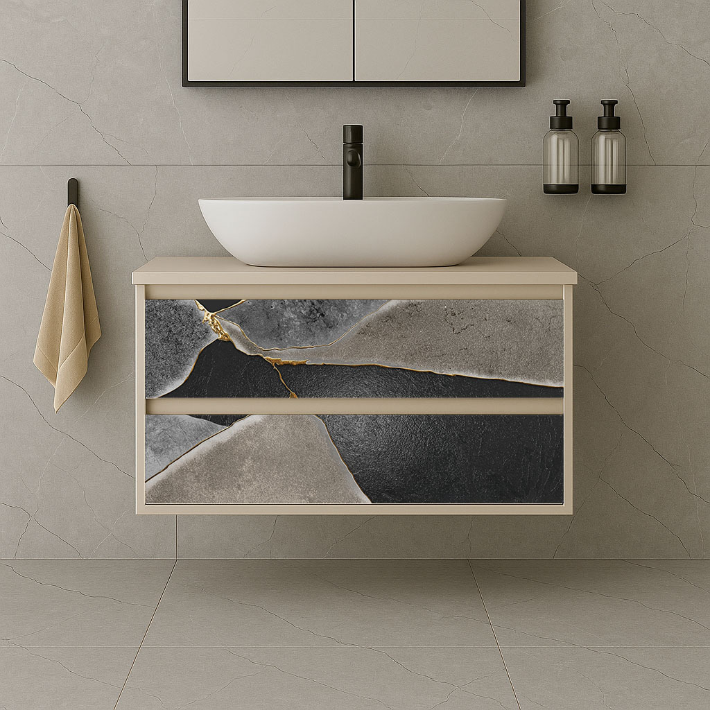 • Голяма мивка със скрит сифон и ПВЦ чекмедже с черен мат рамка VIENA 80