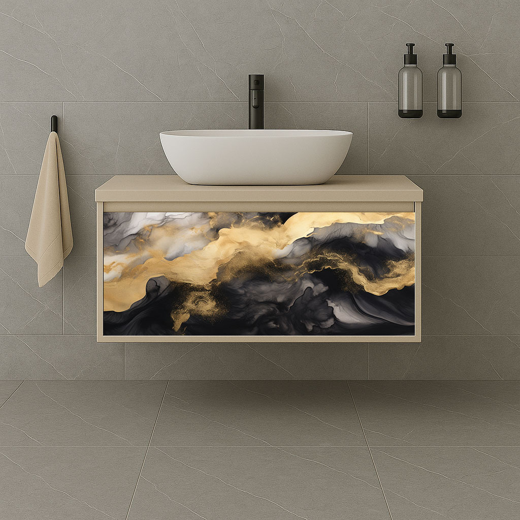 • Голяма мивка със скрит сифон и ПВЦ чекмедже с черен мат рамка VIENA 80