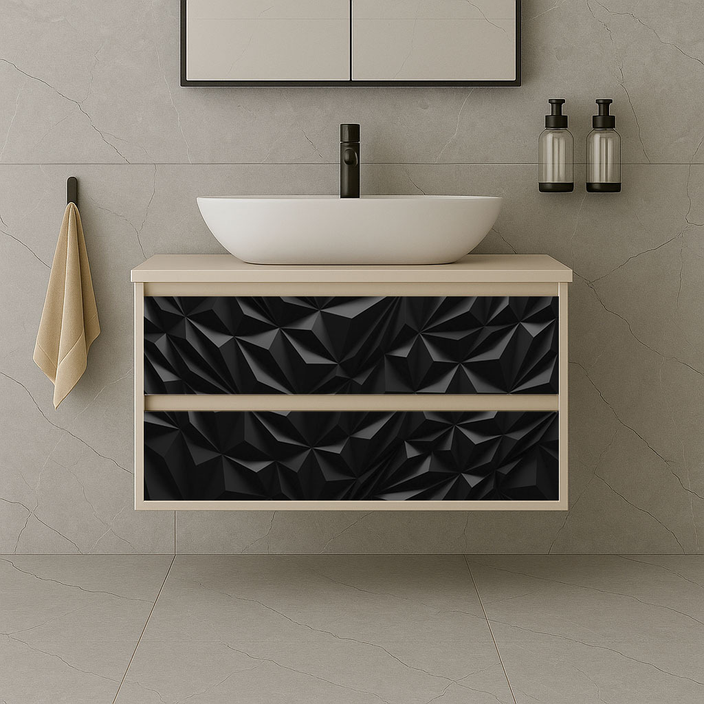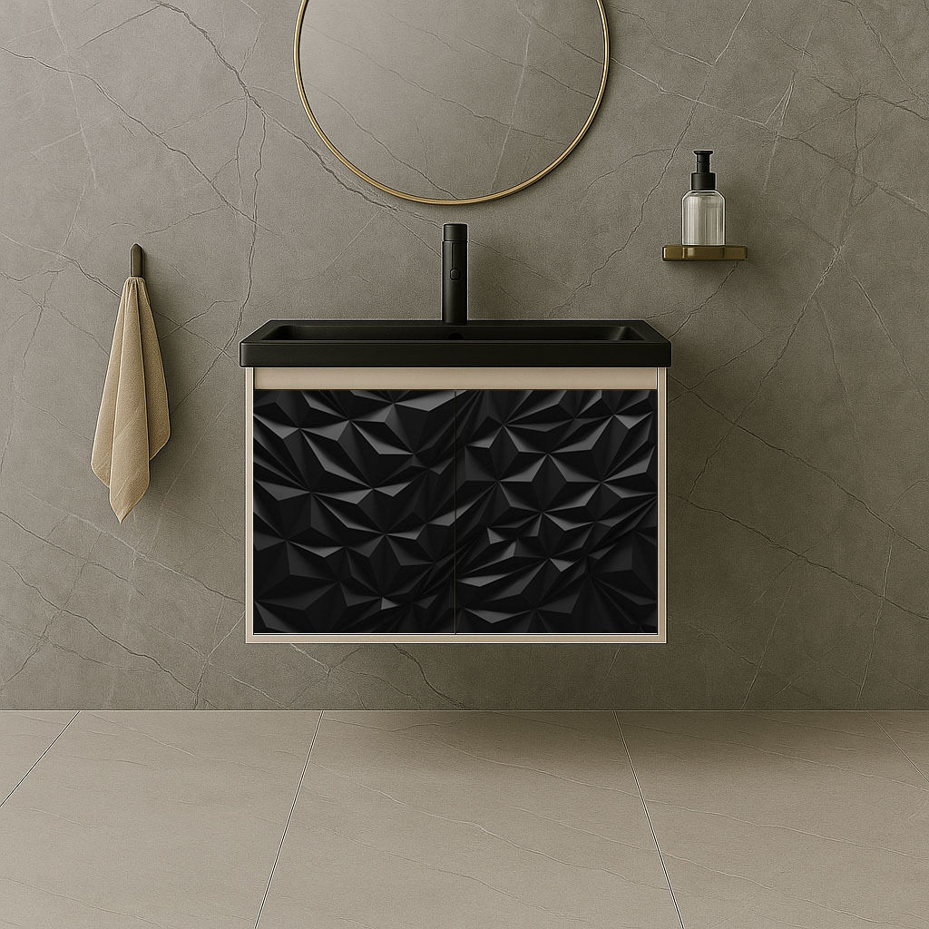 • Голяма мивка със скрит сифон и ПВЦ чекмедже с черен мат рамка VIENA 80