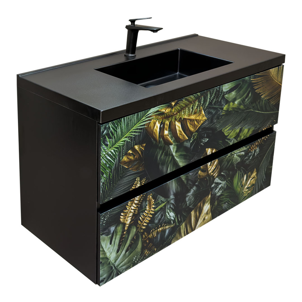 Голяма мивка със скрит сифон и ПВЦ чекмедже с черен мат рамка VIENA 80