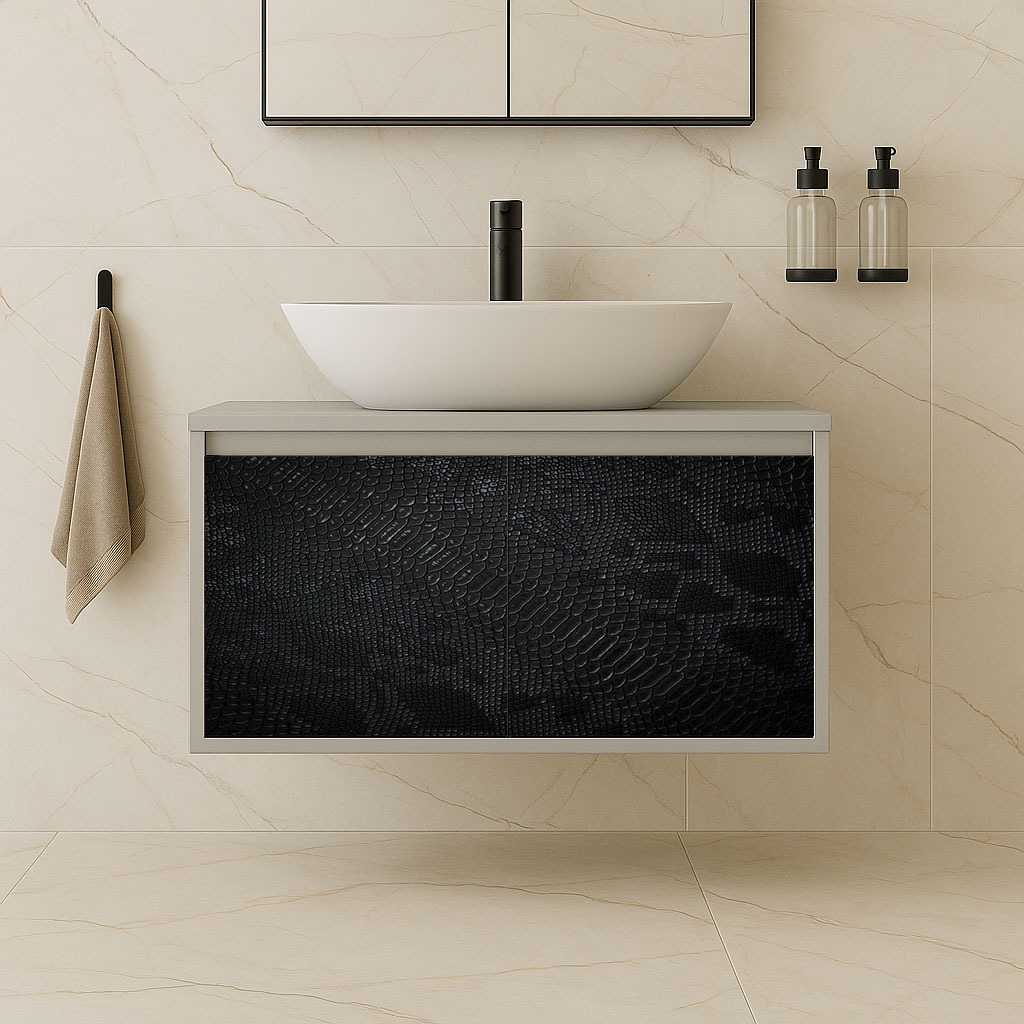 • Голяма мивка със скрит сифон и ПВЦ чекмедже с черен мат рамка VIENA 80