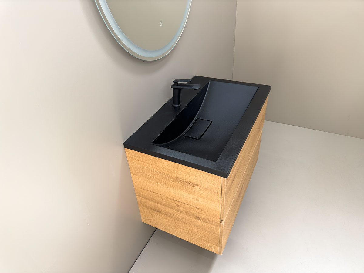 • Голяма мивка със скрит сифон и ПВЦ чекмедже с черен мат рамка VIENA 80