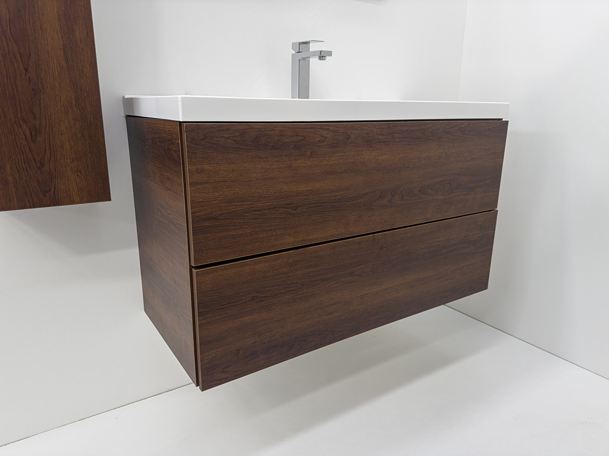 • Мебели за баня от ПВЦ цвят тъмно дърво с бяла мивка Siena 100 Cherry W