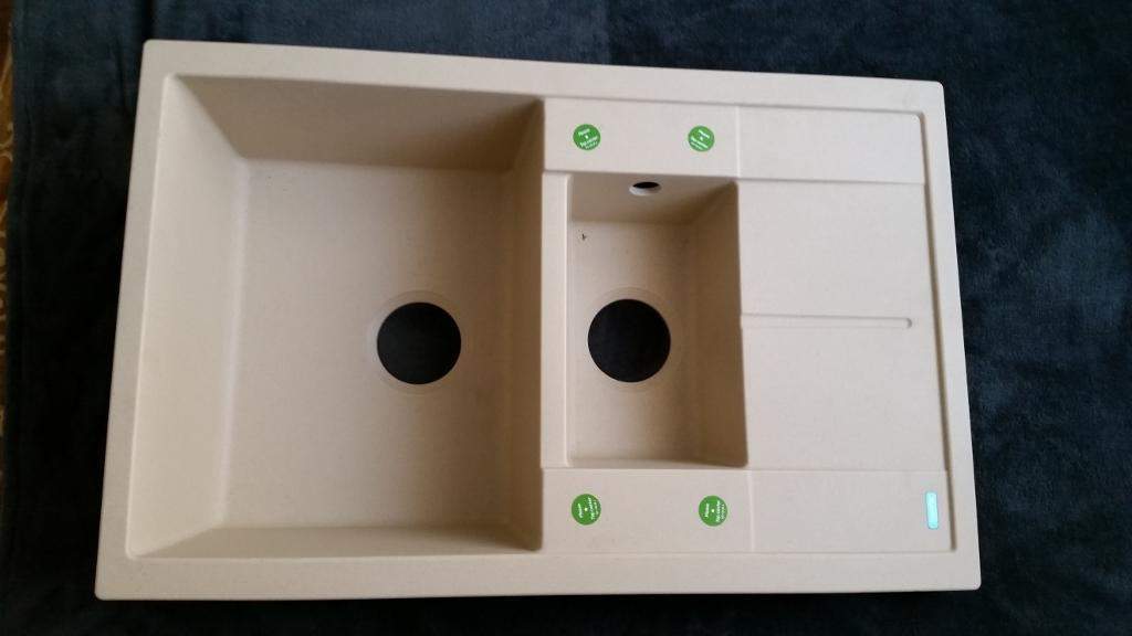 Композитна кухненска мивка за вграждане в плот. Необходимият светъл отвор на шкафа е 600 мм. Външният размер на мивката е 780х500мм. Голямото корито е с размери 430х345мм. и дълбочина 190 мм. Малкото корито е 365х350мм. Модела е с автоматичен сифон и се предлага в богата цветова гама.