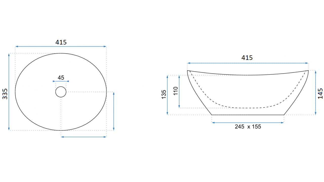 Мивка за баня тип купа. Мивката е изработена от порцелан. Предназначена е за монтаж върху плот. Моделът е доста функционален поради факта, че с умалени размери така че да се пести пространство в банята и да не бъде необходим голям плот, а същевременно коритото е доста удобно за употреба.Комбинира се с висок или вграден смесител. Сифонът е стандартен.