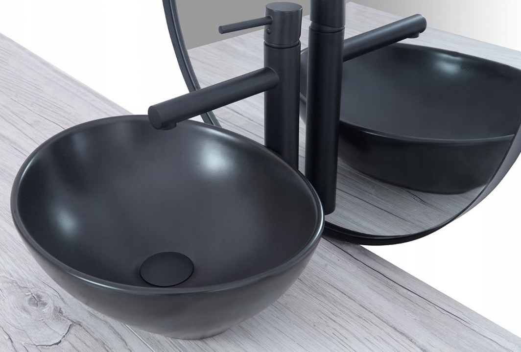 Мивка за баня тип купа. Мивката е изработена от порцелан. Предназначена е за монтаж върху плот. Моделът е доста функционален поради факта, че с умалени размери така че да се пести пространство в банята и да не бъде необходим голям плот, а същевременно коритото е доста удобно за употреба.Комбинира се с висок или вграден смесител. Сифонът е стандартен.