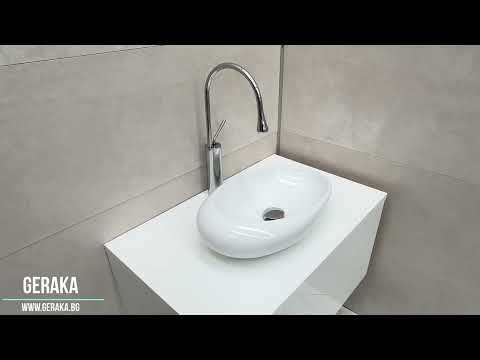 Мивка за баня предназначена за монтаж върху плот. Моделът е доста функционален, тъй като има голямо удобно за ползване корито, а същевременно мивката е тясна така че да може да се монтира и на умален плот с цел спестяване на пространство. Комбинира се с висока батерия за монтаж на плот или вграден смесител. Сифонът е стандартен