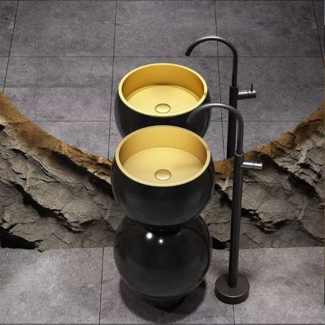 Неръждаема метална мивка тип кашпа Bubble Black/Gold