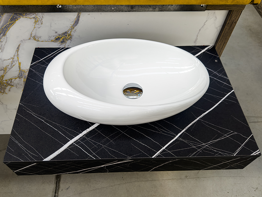 • Отворът за смесител и сифон се прави според мивката