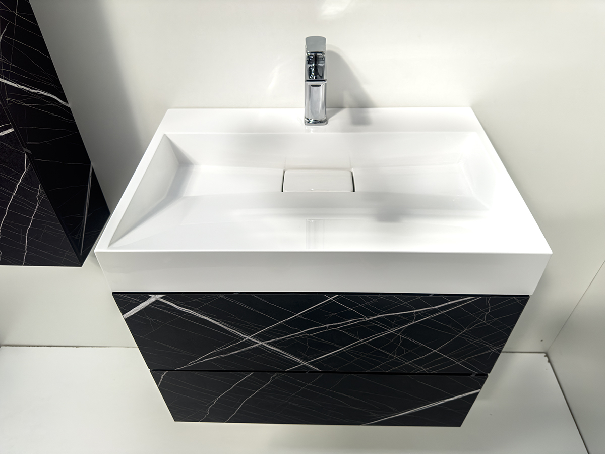 • Голяма мивка със скрит сифон и ПВЦ чекмедже с черен мат рамка VIENA 80