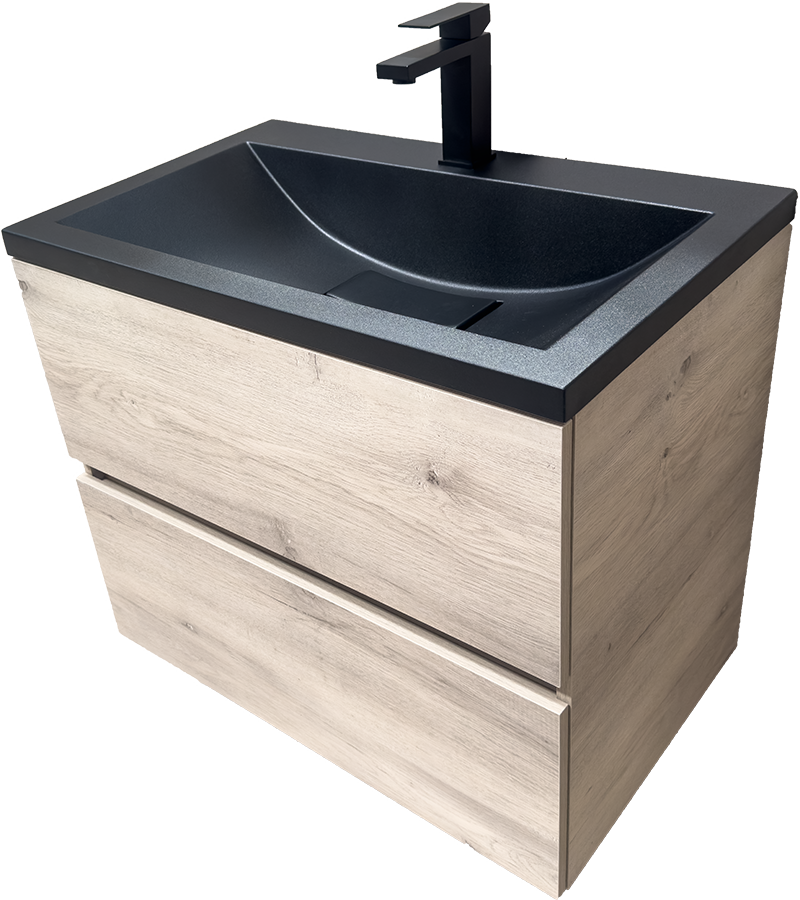 Голяма мивка със скрит сифон и ПВЦ чекмедже с черен мат рамка VIENA 80
