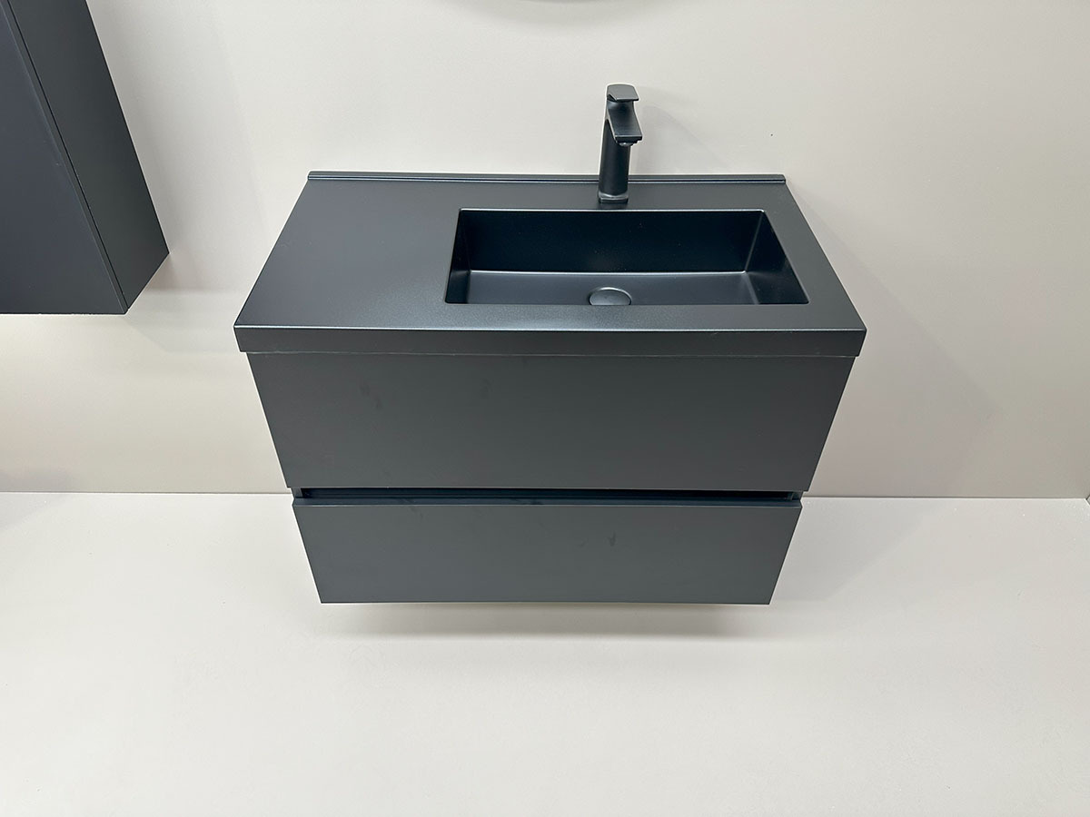 • Голяма мивка със скрит сифон и ПВЦ чекмедже с черен мат рамка VIENA 80
